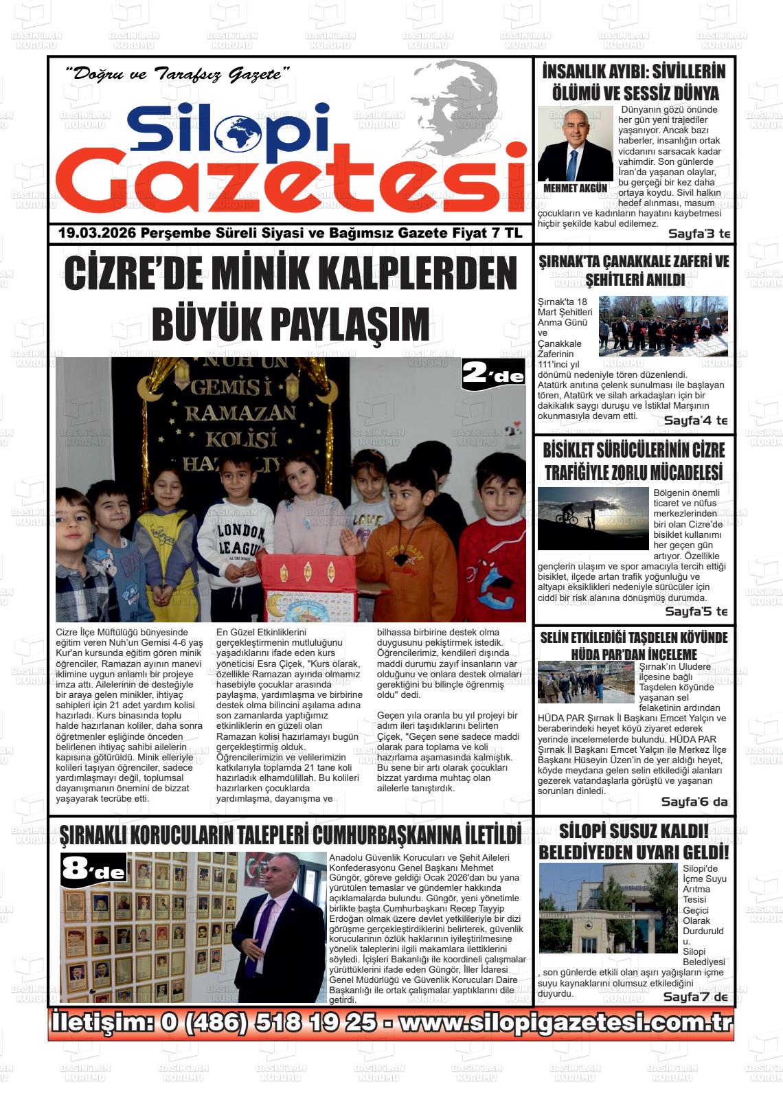 Şırnak Yerel Gazeteleri 19 Mart 2026, Perşembe Günü Manşeti