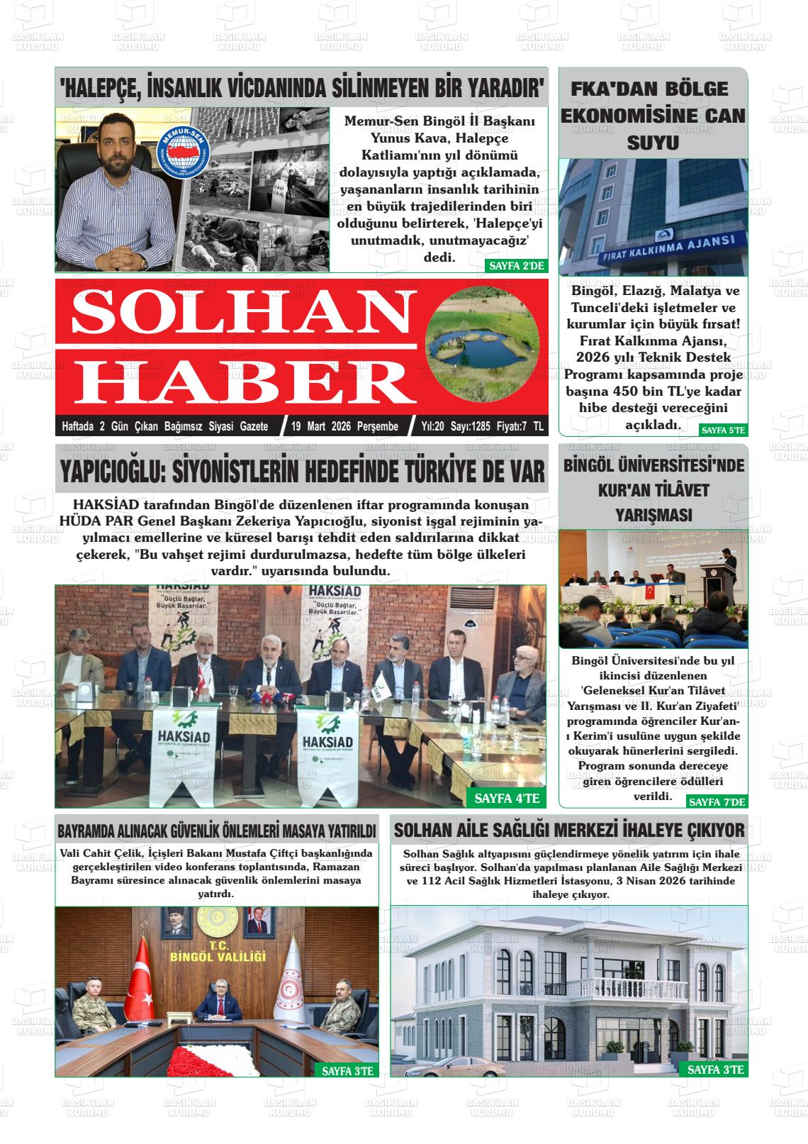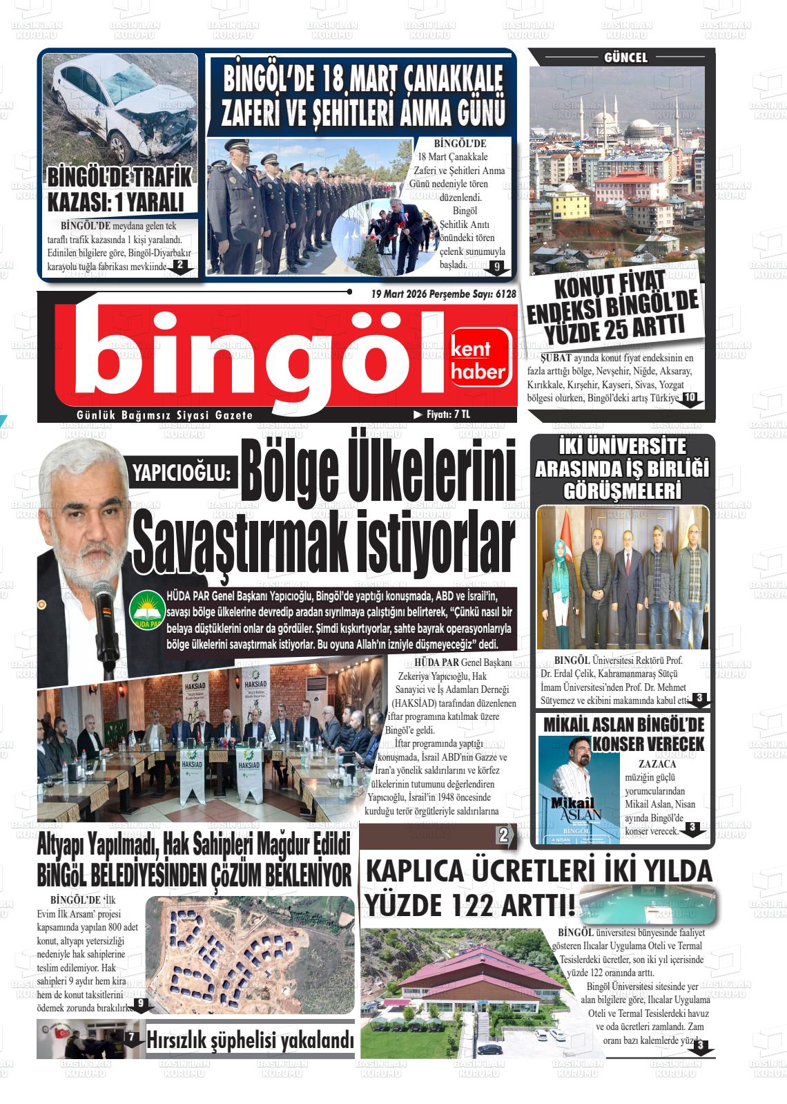 Bİngöl Yerel Gazeteleri 19 Mart 2026, Perşembe Günü Manşeti