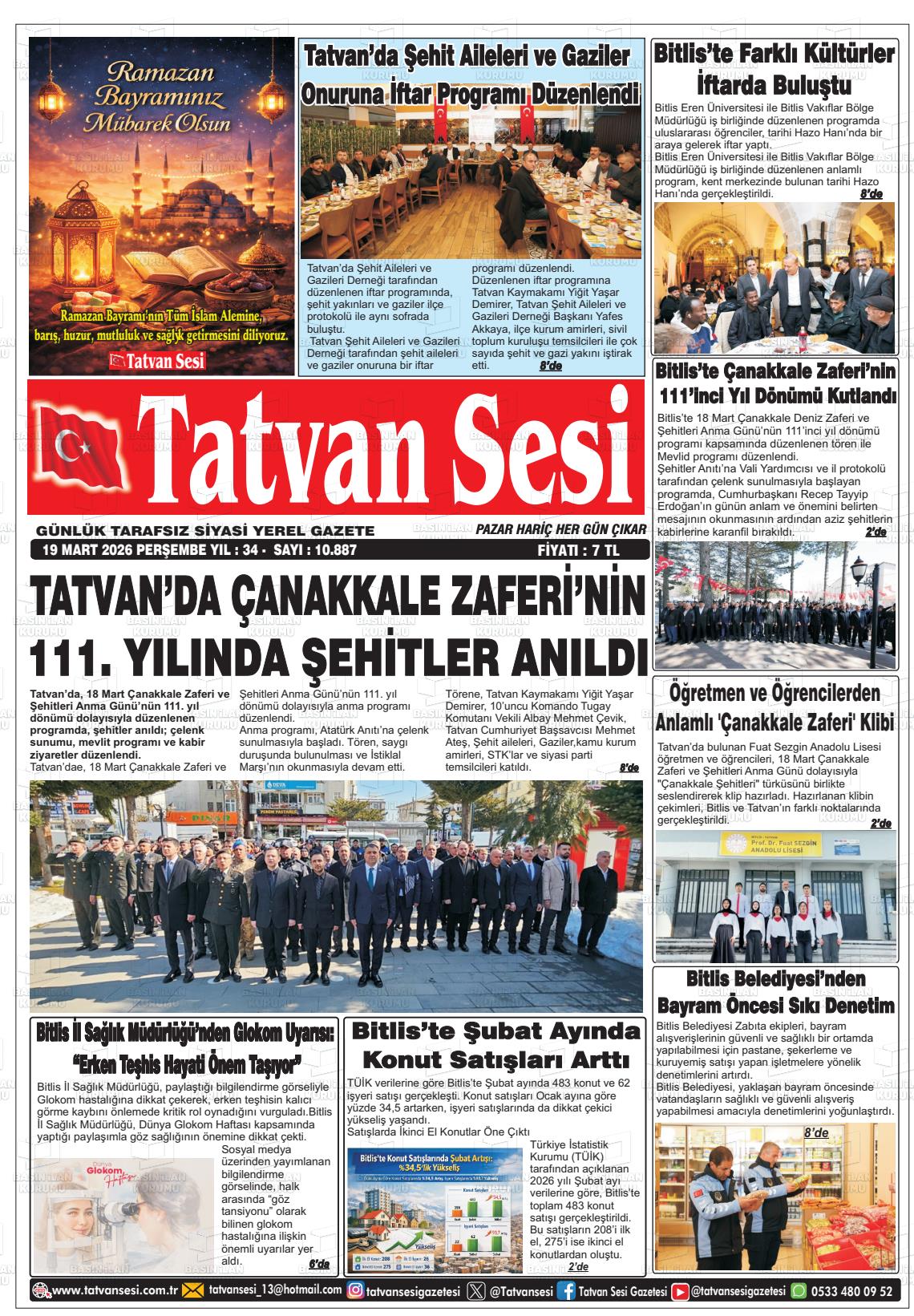 Bİtlİs Yerel Gazeteleri 19 Mart 2026, Perşembe Günü Manşeti