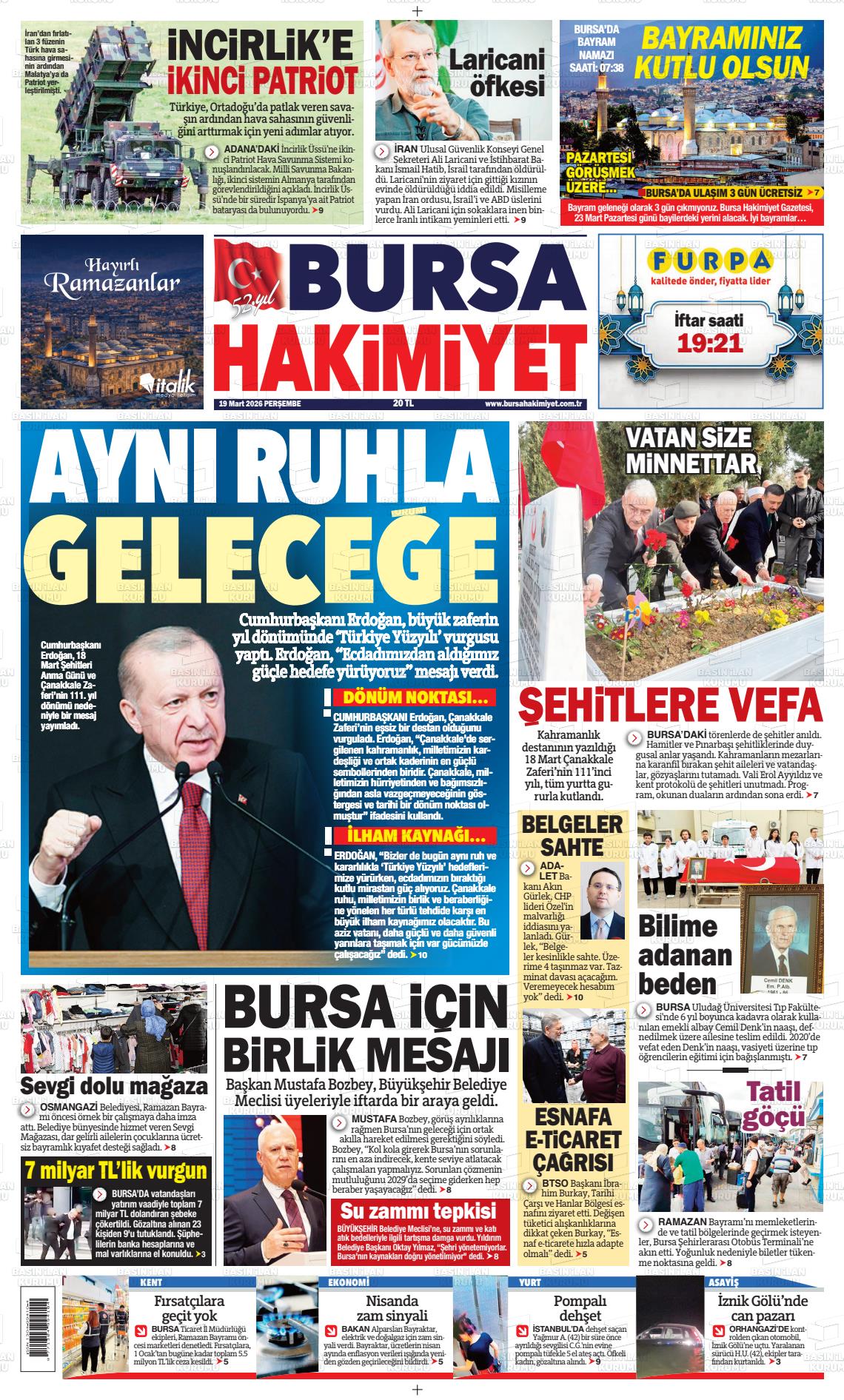 Bursa Yerel Gazeteleri 21 Mart 2026, Cumartesi Günü Manşeti