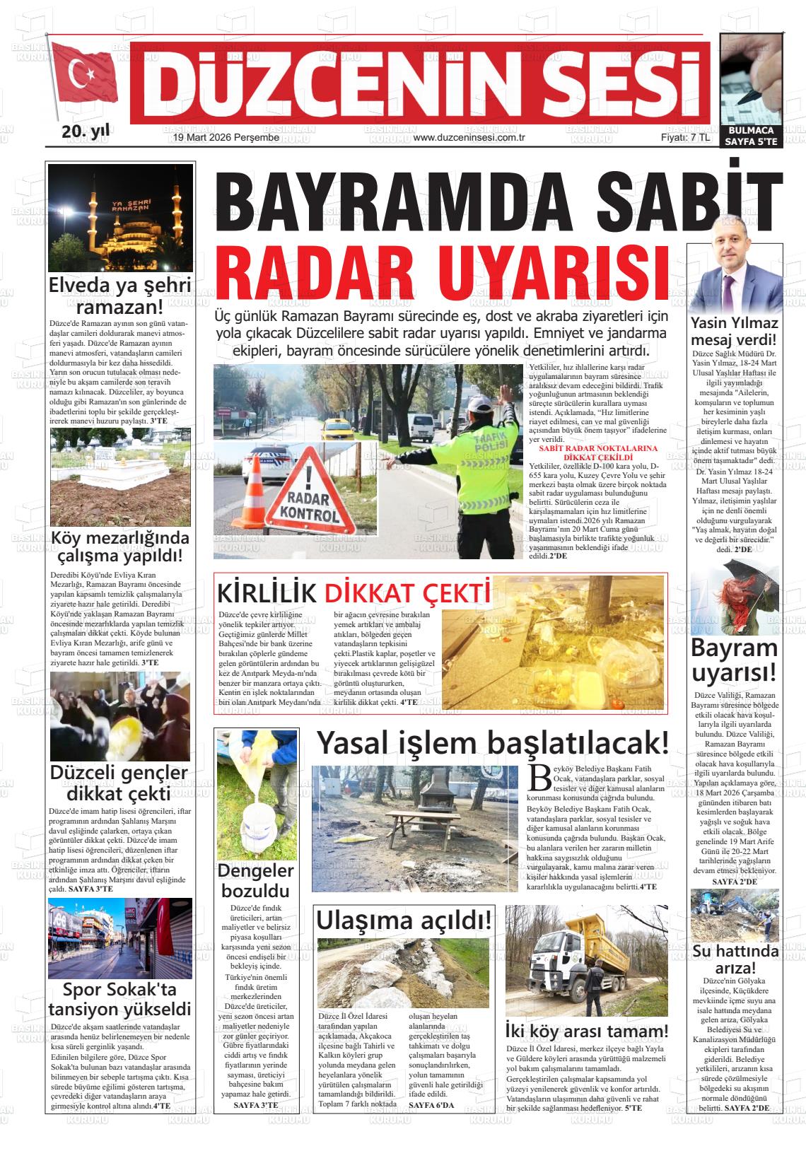 Düzce Yerel Gazeteleri 21 Mart 2026, Cumartesi Günü Manşeti